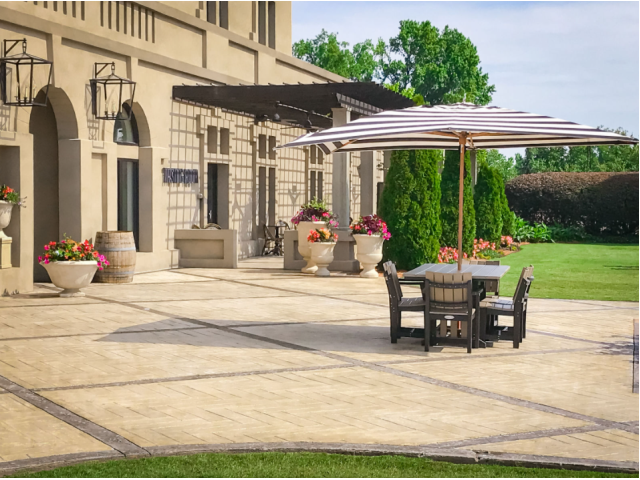 We completely transformed the main entrance and spa, adding seasonal color in the front flower bed, colorful potted arrangements, adirondack chairs near the vineyard, tables with additional seating, and canopy trees to shade the space. Our team also added seasonal color to the entrance of the golf clubhouse. These enhancements not only added bursts of much-needed color to the landscape but also encouraged guests to enjoy the natural beauty of the grounds. Providing the extra seating areas allows visitors to truly immerse themselves in nature.