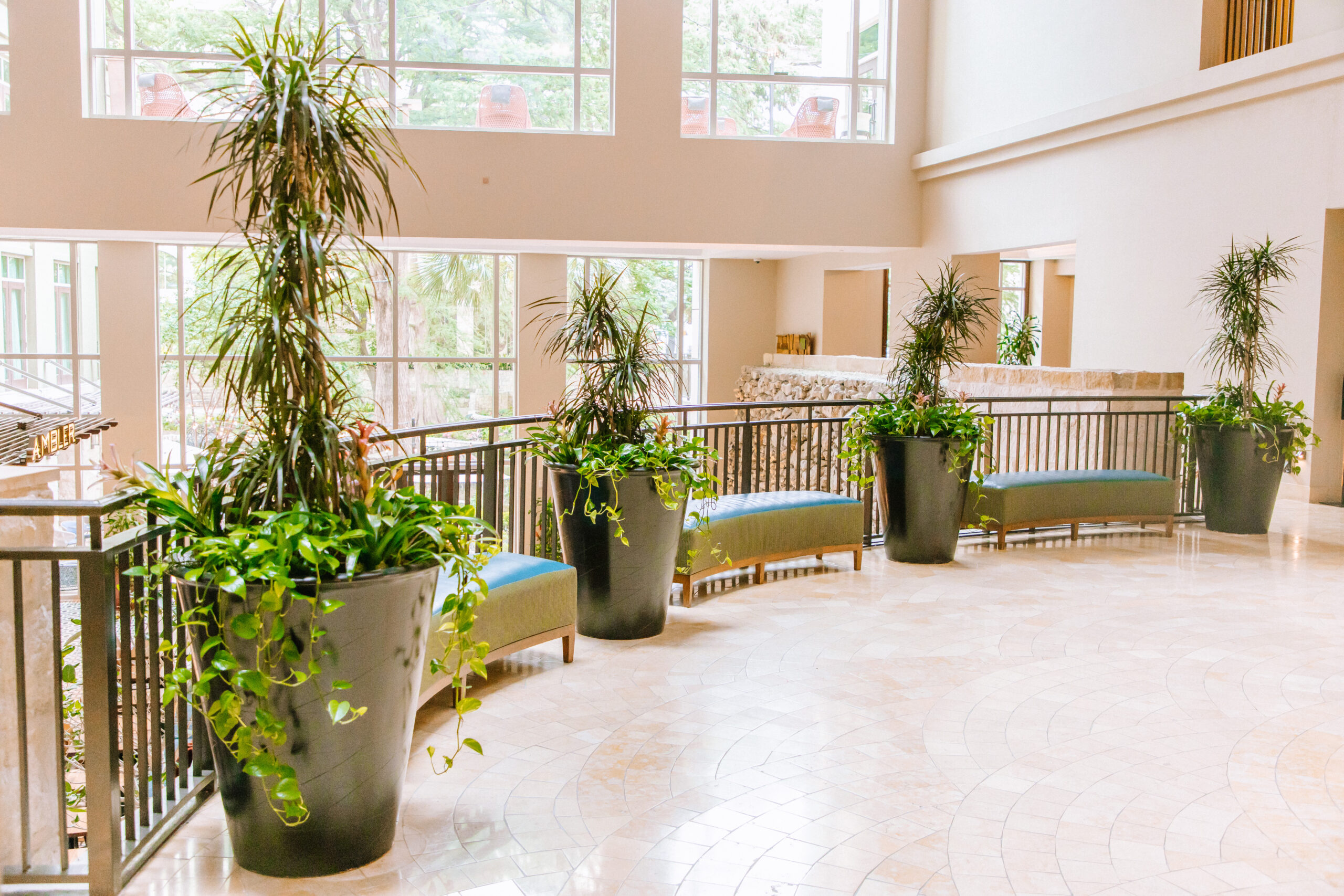 When San Antonio faced ongoing icy weather in February 2021, the tropical plant material on site suffered. When the client asked to refresh the affected plant material, they opted to switch from tropical options for a clean, well-manicured aesthetic in hopes of distinguishing themselves from other hotels in the area.