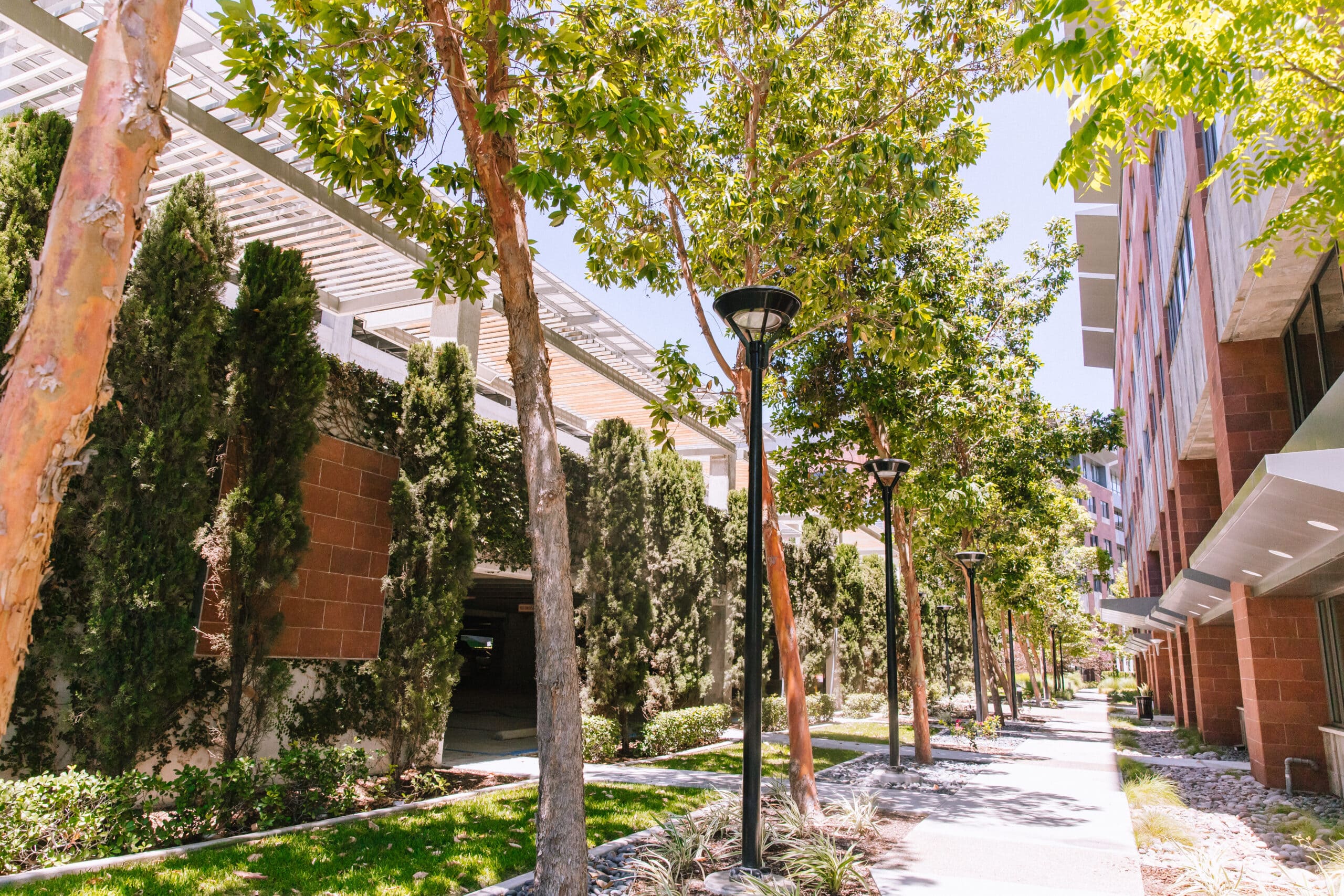 Designed to accommodate a live/work lifestyle, guests and tenants tend to spend a lot of time in the outdoor space. That being said, to ensure a cohesive aesthetic throughout the 450,000 square foot campus, the property manager requires that all of the outdoor spaces remain well-manicured and cohesive. Our team suggested the installation of drought-tolerant replacements like Black Rose Aeonium, Candelabra Trees, String of Pearls, and Sandpaper Sotols throughout the campus and in planters to meet this need.