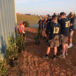 AM Pernell Roberts, PM Mike Dorman, Joey Gonzalez, and Paul Dunklee volunteered two hours on a Saturday morning to install fresh sod, shrubs, and pine straw. The crew also instructed the baseball team on how to maintain the landscape. Bailey expressed his gratitude to the crew for helping to enhance the look and functionality of the new facility.
